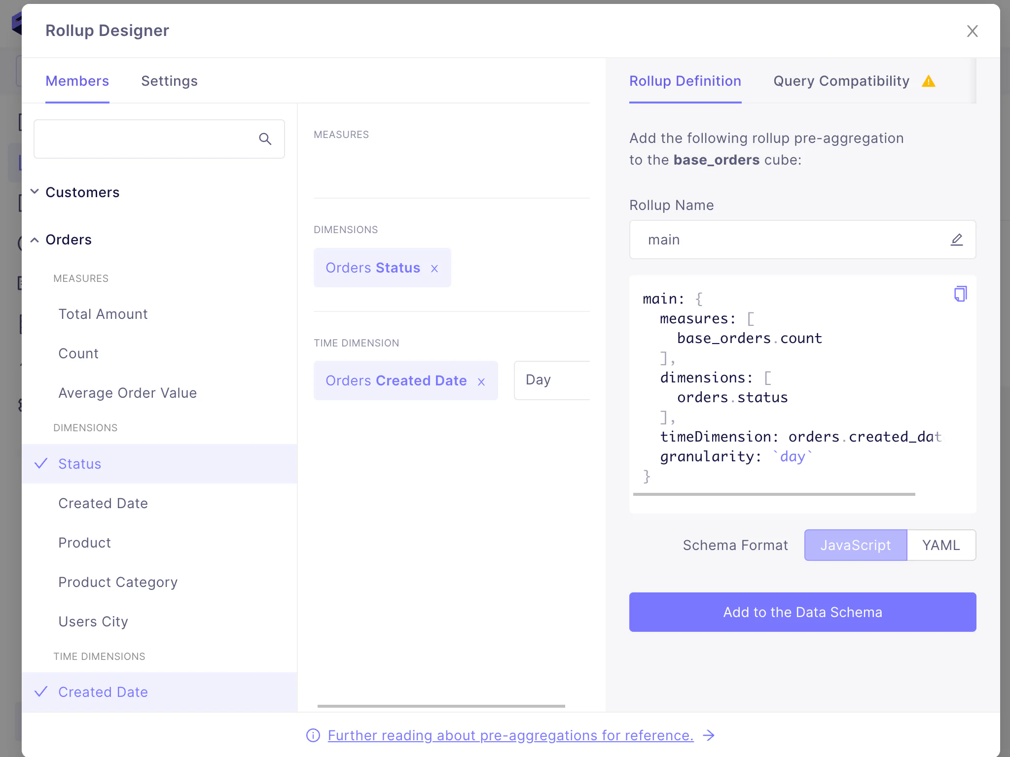 Rollup Designer provides an easy way to create and edit pre-aggregations.